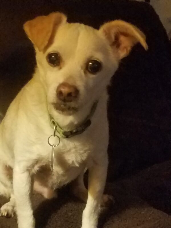 This is my 18yr old Chihuahua/ Jack Chico..he was rescued from a shelter when we were visiting family in Texas..he had 10 days left or he was going to be euthanized ..he has been a wonderful companion..is so lovable and loves to snuggle